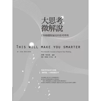 擅長跨知識場域的出版經紀人約翰.柏克曼透過Edge.org讓當中多位意見領袖人物在本書中登場,切磋砥礪。共有150位世界頂尖人才參與,他們皆以自己的專業領域為出發點回答一個問題:哪種科學概念可以改善大家的認知?提出的思考、策略與論點,將讓我們明白我們的世界,世界的未來,並據此對未來做出更好的選擇。