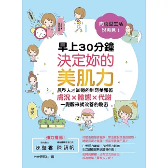 「晨型人」源自於日本的全新時間管理概念,指每天早早就寢,也早早起床的「新鮮」人!夜型社會已逐漸轉為晨型社會,早起享受美味早餐、規劃一天的生活作息,再出門迎接美好早晨,正是時下流行的生活趨勢。獲得充裕的時間、心靈的健康、光滑的肌膚、緊實的身材,只要養成早睡早起的生活,一切都能夠順利掌握在手!